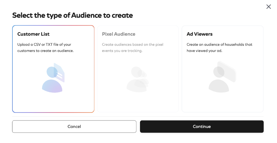 Note: If you're uploading a new audience for the first time, you must accept Universal Ad’s Custom Audience Matching Terms. You only need to complete this step once.