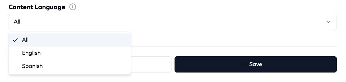 2. Under “Advanced Options” there will be a field titled “Content Language”, select the box that says, “Select Language” and there will be a dropdown containing the options All, English, and Spanish. Select “English” to target English programming only or select “Spanish” target Spanish programming only. Select "All" to include both English and Spanish programming.
