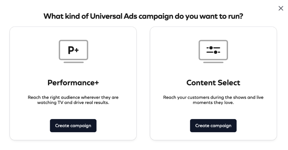 Universal Ads Manager offers two campaign types designed to support different advertising goals: