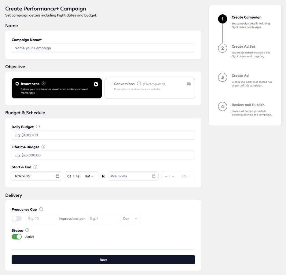 Performance+: Reach the right audience across Universal Ad’s premium publishers, wherever they’re watching TV. Performance+ automatically optimizes delivery to maximize performance and outcomes.