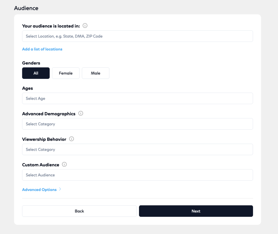 - Select the demographics you want to target, including age range, gender, viewership behavior and advanced demographics.