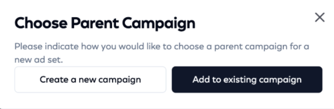 Once you select either add to existing campaign or create a new campaign, continue through the creation flow.